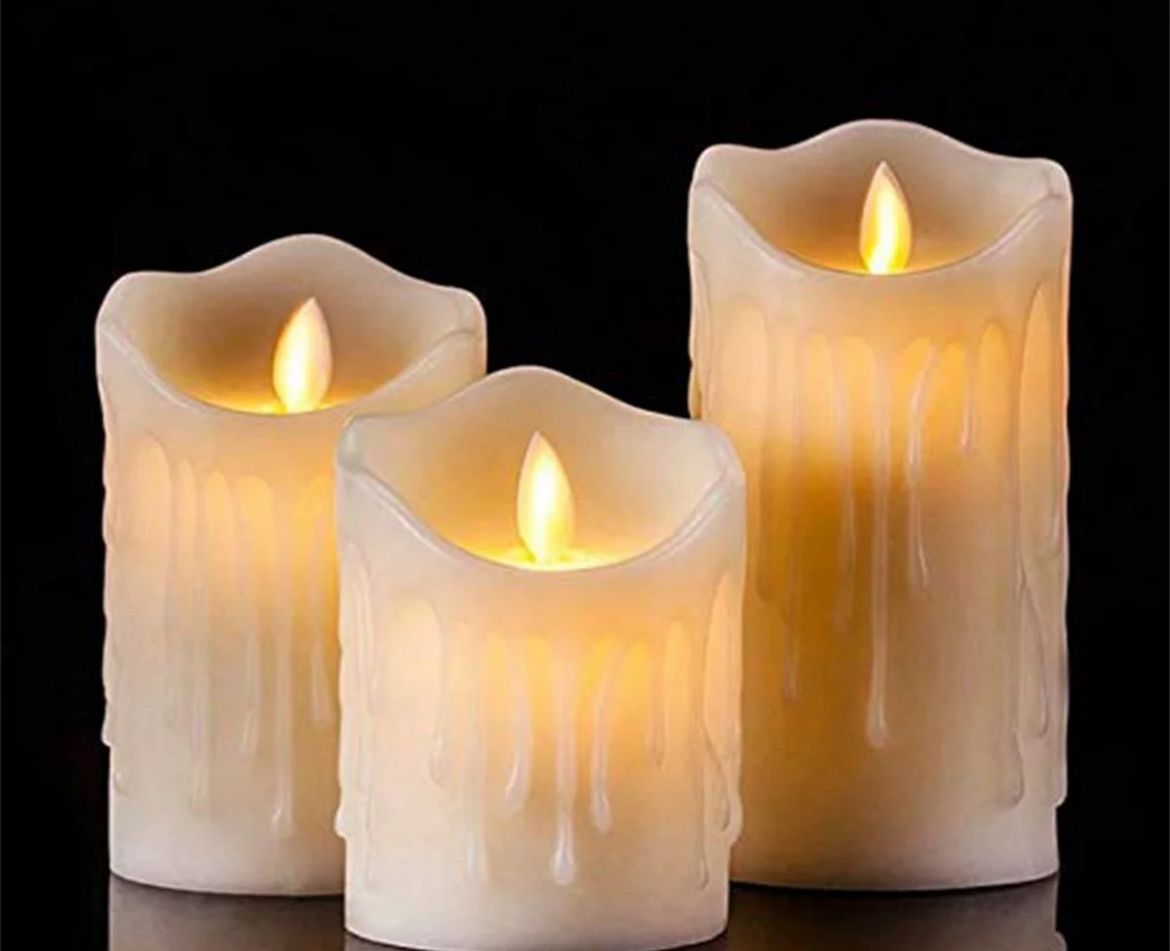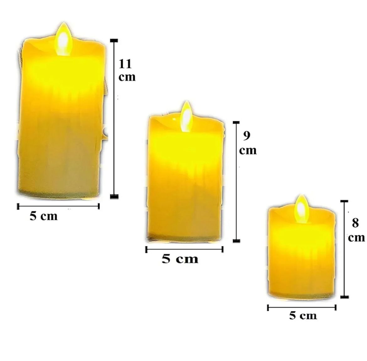 Set of 3 in the shape of a Flame with Moving Tip Melted Candle 7-9-11cm with decorative Led Light