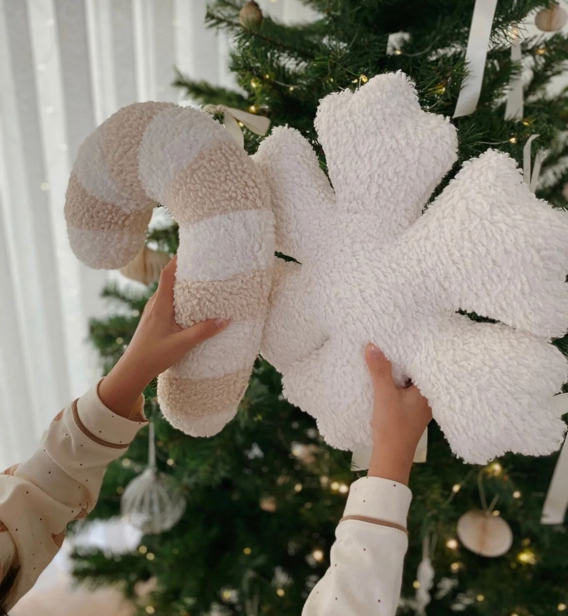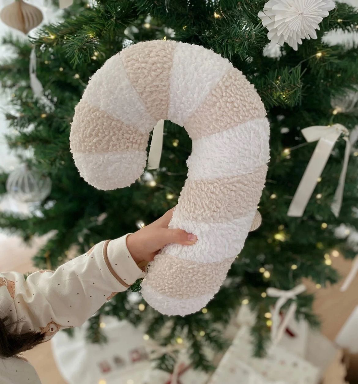 The candy cane pillow, made of teddy fabric and attracting attention with its soft texture, is a great complement to your Christmas decoration.